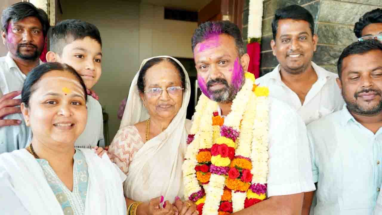 ಬೆಳಗಾವಿಯ ಬಿಡಿಸಿಸಿ ಬ್ಯಾಂಕಿನ ಚುನಾವಣೆಯಲ್ಲಿ ನಿರ್ದೇಶಕ ಸ್ಥಾನಕ್ಕೆ ಸ್ಪರ್ಧಿಸಿದ್ದ ವಿಧಾನ ಪರಿಷತ್ ಸದಸ್ಯ ಚನ್ನರಾಜ ಹಟ್ಟಿಹೊಳಿ ಅವರು ಅವಿರೋಧವಾಗಿ ಆಯ್ಕೆಯಾಗಿದ್ದಾರೆ. ಈ ಹಿನ್ನೆಲೆ ಅವರ ನಿವಾಸದಲ್ಲಿ ಇಂದು ಅಭಿಮಾನಿಗಳು ಸಿಹಿ ಹಂಚಿ, ಗುಲಾಲು ಎರಚಿ ಘೋಷಣೆಗಳನ್ನು ಕೂಗುತ್ತ ಸಂಭ್ರಮಾಚರಣೆ ಮಾಡಿದರು.  ಸಚಿವೆ ಸಚಿವೆ ಲಕ್ಷ್ಮೀ ಹೆಬ್ಬಾಳಕರ್, ತಾಯಿ ಗಿರಿಜಾ ಹಟ್ಟಿಹೊಳಿ ಹಾಗೂ ಕುಟುಂಬಸ್ಥರು ಆರತಿ ಬೆಳಗಿ ಸಿಹಿ ತಿನ್ನಿಸಿ ಶುಭಾಷಯಗಳನ್ನು ಕೋರಿದರು.