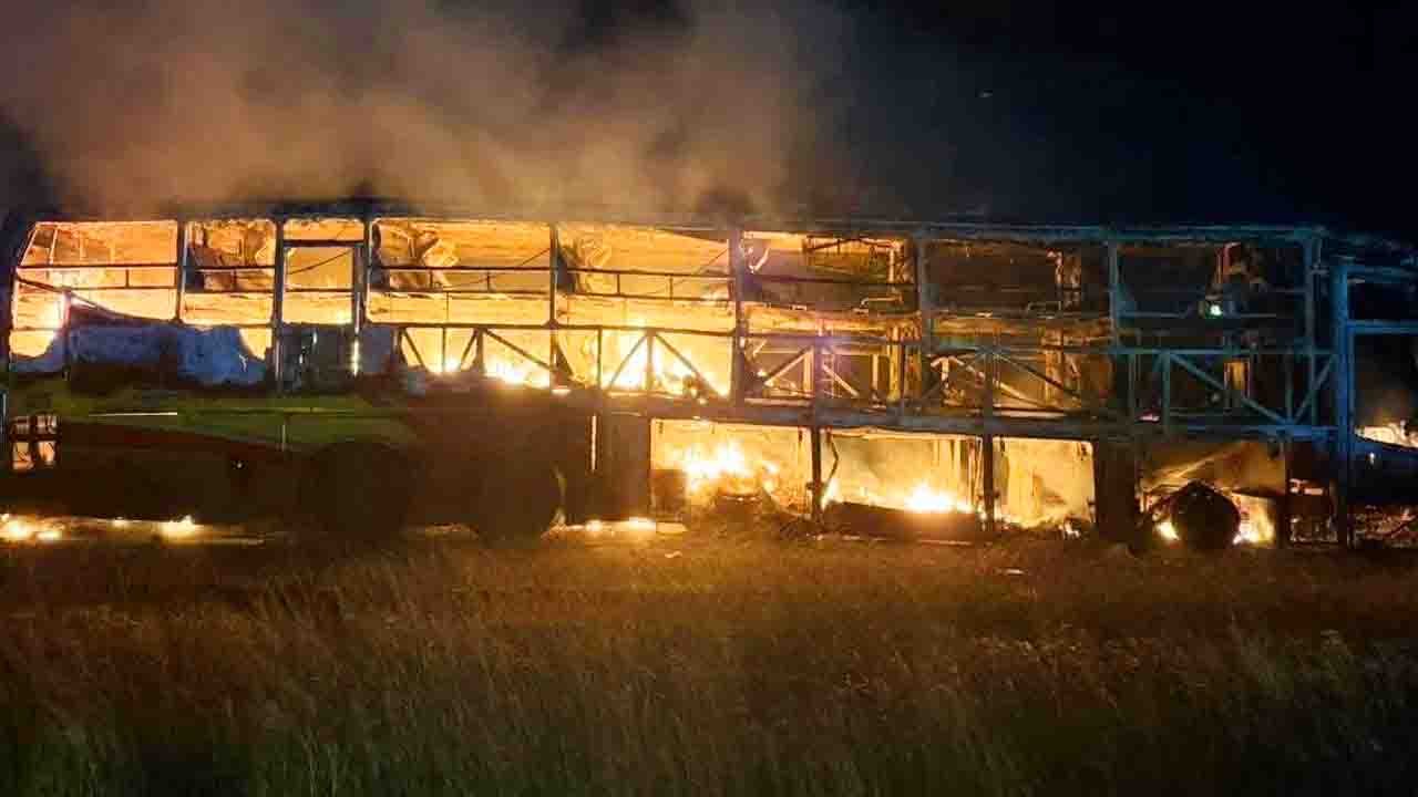 ಹೈದರಾಬಾದ್‌ನಿಂದ ಬೆಂಗಳೂರಿಗೆ ತೆರಳುತ್ತಿದ್ದ ಖಾಸಗಿ ಬಸ್‌ವೊಂದು ಆಂಧ್ರಪ್ರದೇಶದ ಕರ್ನೂಲ್‌ ಜಿಲ್ಲೆಯಲ್ಲಿ ಭಾರಿ ಬೆಂಕಿಗೆ ಆಹುತಿಯಾಗಿದ್ದು, 20ಕ್ಕೂ ಹೆಚ್ಚು ಮಂದಿ ಪ್ರಯಾಣಿಕರು ಸಜೀವ ದಹನವಾಗಿದ್ದಾರೆ. ಇಂದು ನಸುಕಿನ ಜಾವ ಕರ್ನೂಲ್‌ ಉಪನಗರ ಚಿನ್ನಟೇಕೂರಿನ ರಾಷ್ಟ್ರೀಯ ಹೆದ್ದಾರಿ 44 ರಲ್ಲಿ ಈ ದುರಂತ ಸಂಭವಿಸಿದೆ.