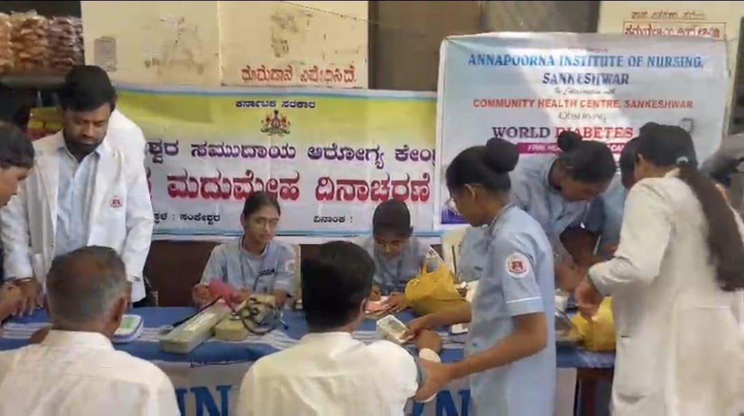ಸಂಕೇಶ್ವರ ನಗರದಲ್ಲಿ ಎಸ್ ಡಿ ವಿ ಎಸ್ ಸಂಘದ ಅನ್ನಪೂರ್ಣಾ ನರ್ಸಿಂಗ್ ಇನ್ಸ್ಟಿಟ್ಯೂಟ್ ಮತ್ತು ಸಾರ್ವಜನಿಕ ಆಸ್ಪತ್ರೆ ಸಂಕೇಶ್ವರ ಹಾಗೂ ಎನ್ ಸಿ ಡಿ ಘಟಕದ ಸಂಯುಕ್ತ ಆಶ್ರಯದಲ್ಲಿ ಜರುಗಿದ ವಿಶ್ವ ಮಧುಮೇಹ ದಿನವನ್ನು ಸಾರ್ವಜನಿಕರಲ್ಲಿ ಜಾಗ್ರತೆ ಮೂಡಿಸುವ ಮೂಲಕ ಆಚರಿಸಲಾಯಿತು.
