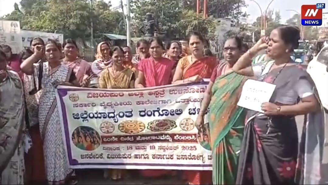 ರಾಜ್ಯ ಸರ್ಕಾರ ಖಾಸಗಿ ಸಹಭಾಗಿತ್ವದ ವೈದ್ಯಕೀಯ ಕಾಲೇಜು ನಿರ್ಮಾಣ ನಿರ್ಧಾರವನ್ನು ಕೈಬಿಡಬೇಕು ಎಂದು ಆಗ್ರಹಿಸಿ ವಿಜಯಪುರ ನಗರದಲ್ಲಿ ಮಹಿಳೆಯರು ಮಂಗಳವಾರ ವಿನೂತನ ಪ್ರತಿಭಟನೆ ನಡೆಸಿದರು. ನಗರದ ಪ್ರಮುಖ ವೃತ್ತಗಳಲ್ಲಿ ರಂಗೋಲಿ ಬಿಡಿಸಿ,