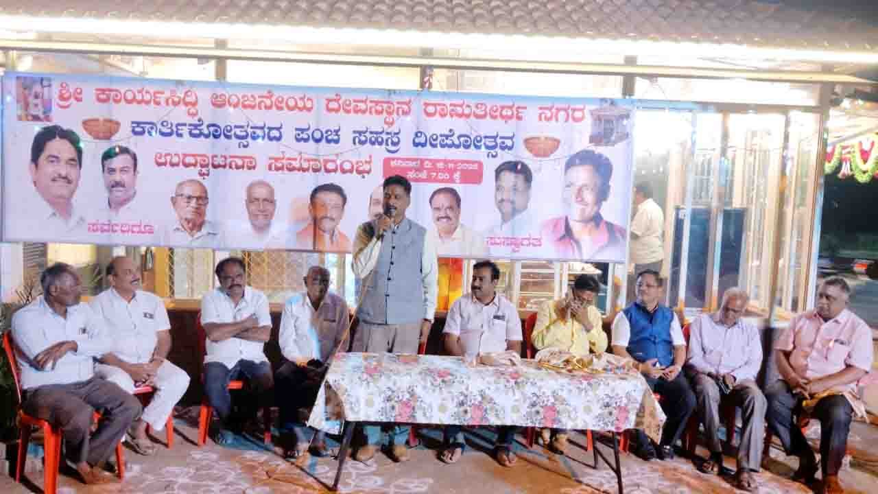 ಅವರು ಶನಿವಾರ ಬೆಳಗಾವಿ ರಾಮತೀರ್ಥನಗರದ ಶ್ರೀ ಕಾರ್ಯಸಿದ್ಧಿ ಆಂಜನೇಯಸ್ವಾಮಿ ದೇವಸ್ಥಾನದಲ್ಲಿ ಕಾರ್ತಿಕೋತ್ಸವ ನಿಮಿತ್ತ ಸಂಜೆ ಜರುಗಿದ ಪಂಚ ಸಹಸ್ರ ದೀಪೋತ್ಸವ ಕಾರ್ಯಕ್ರಮದಲ್ಲಿ ಮುಖ್ಯ ಅತಿಥಿಯಾಗಿ ಪಾಲ್ಗೊಂಡು ಗದ್ದುಗೆಗೆ ಪೂಜೆ ಸಲ್ಲಿಸಿ ರಾಷ್ಟ್ರಪ್ರಶಸ್ತಿ ಪುರಸ್ಕ್ರತ ನಿವ್ರತ್ತ ಘಟಕಾಧಿಕಾರಿ ಬಸಪ್ಪಾ ಉರಬಿನಹಟ್ಟಿ ಅವರನ್ನು ಸನ್ಮಾನಿಸಿ ಮಾತನಾಡಿದರು.