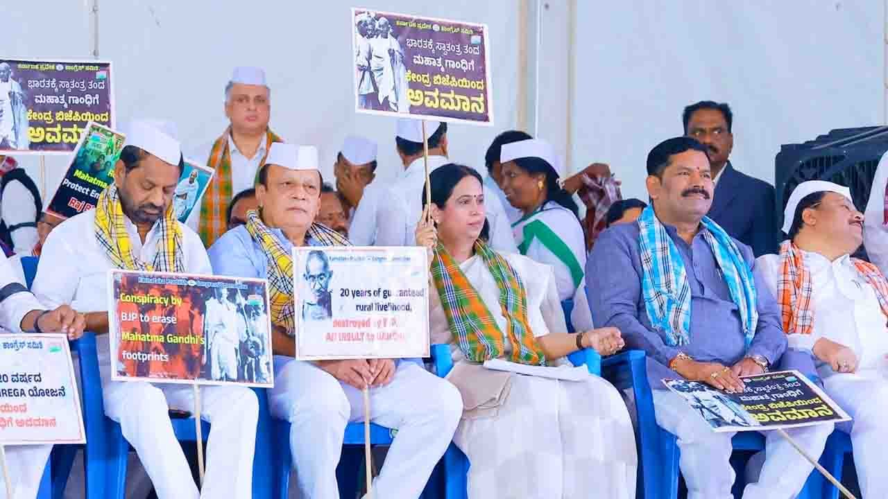 MGNREGA ಬದಲಾಗಿ VB-G RAM G ತರುವ ಕೇಂದ್ರ ಸರ್ಕಾರದ ಕ್ರಮದ ವಿರುದ್ಧ ಪ್ರತಿಭಟನೆ ನಡೆಯಿತು.