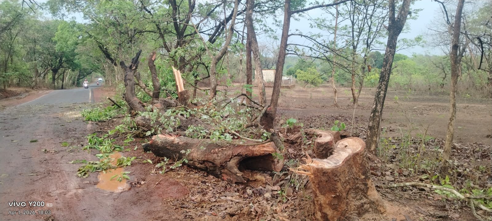 -ಖಾನಾಪೂರ–ಹೆಮ್ಮಡಗಾ ಮಾರ್ಗದ ಹಲಾತ್ರಿ ನದಿ ಸೇತುವೆ ಹಾಗೂ ಮಂತುರ್ಗಾ ಕತ್ರಿ ನಡುವಿನ ಭಾಗದಲ್ಲಿ ಗಾಳಿ-ಮಳೆಯ ಪರಿಣಾಮವಾಗಿ ಒಂದು ದೊಡ್ಡ ಮರ ಏಕಾಏಕಿ ರಸ್ತೆಯ ಮೇಲೆ ಉರುಳಿತು. ಇದರಿಂದ ಈ ಮಾರ್ಗದ ಸಂಚಾರ ಕೆಲಕಾಲ ಸಂಪೂರ್ಣ ಸ್ಥಗಿತಗೊಂಡಿತ್ತು.